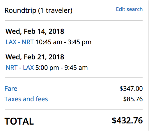 Los Angeles (LAX) to Tokyo (NRT) for $433 round-trip with ANA: