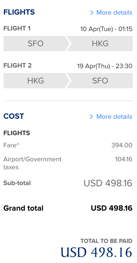 San Francisco (SFO) to Hong Kong (HKG) for $498 round-trip with Singapore:
