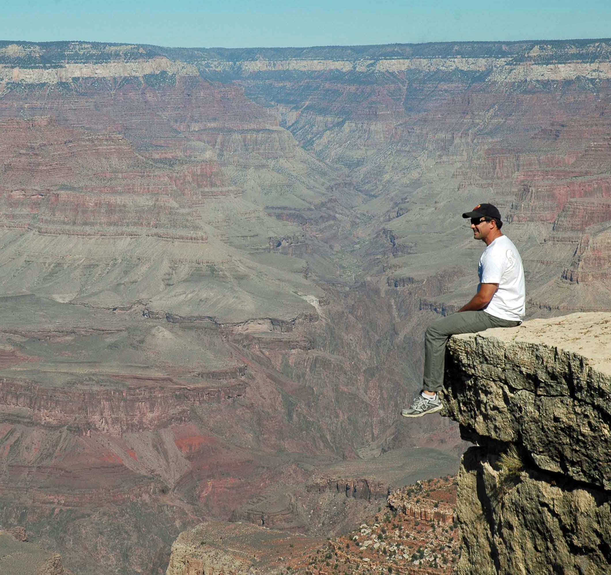 The author enjoys a rare moment of solitude at the Grand Canyon (photo via The Points Guy - Bill Fink)
