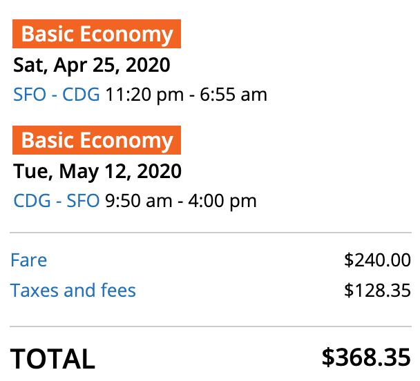 San Francisco (SFO) to Paris (CDG) for $368 round-trip on United: