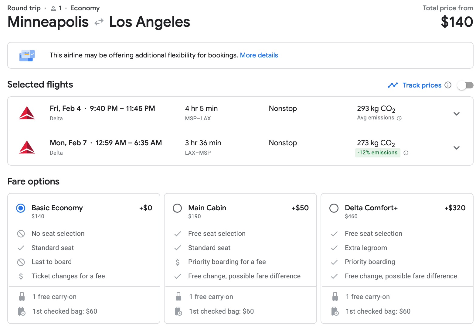 Minneapolis (MSP) to LA in February for a long weekend can be booked on Delta for $140 nonstop.