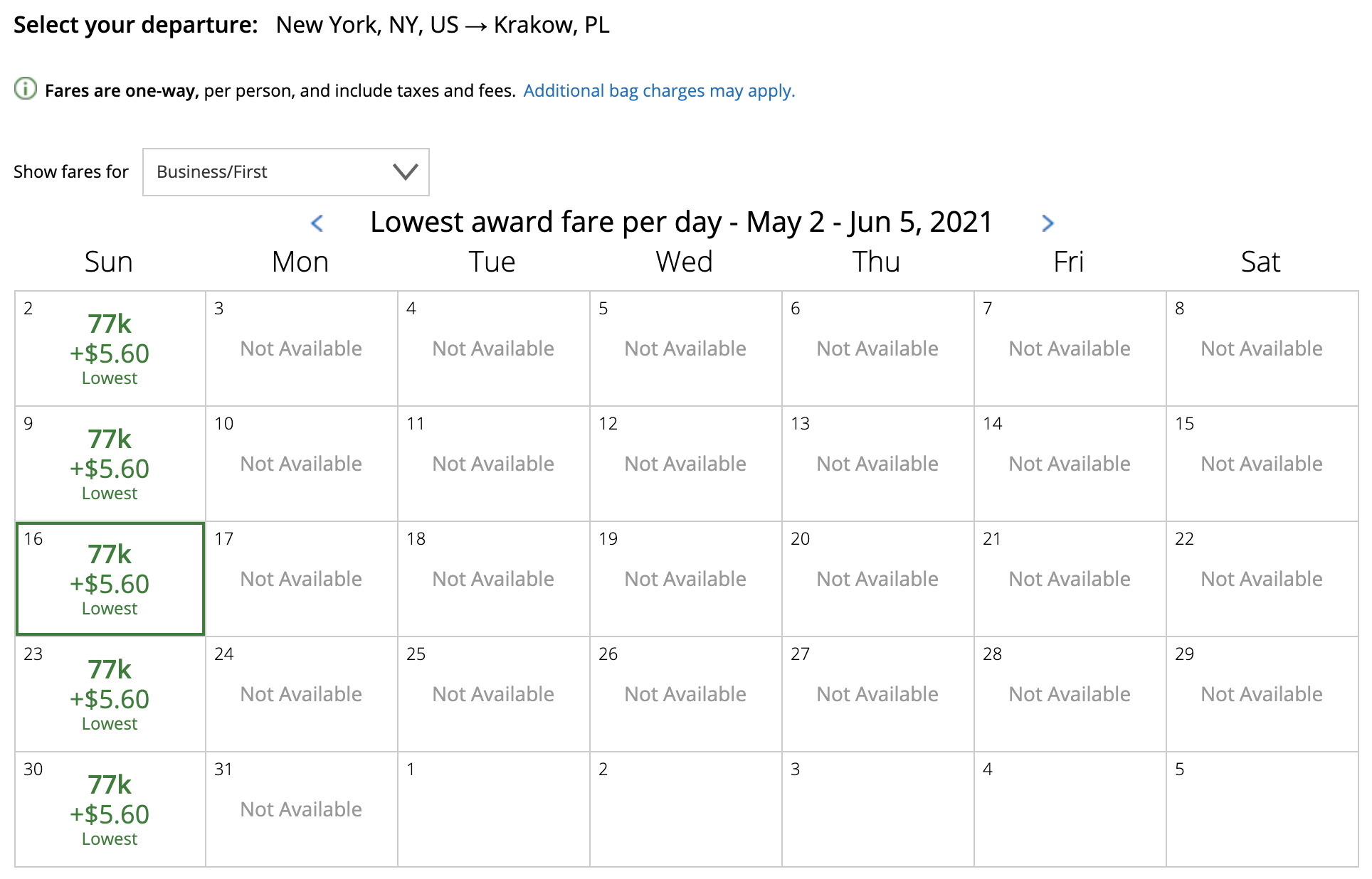 There's great news on the award front, though — LOT is currently offering economy and business-class awards to Star Alliance partners on almost every single date the airline plans to fly.
