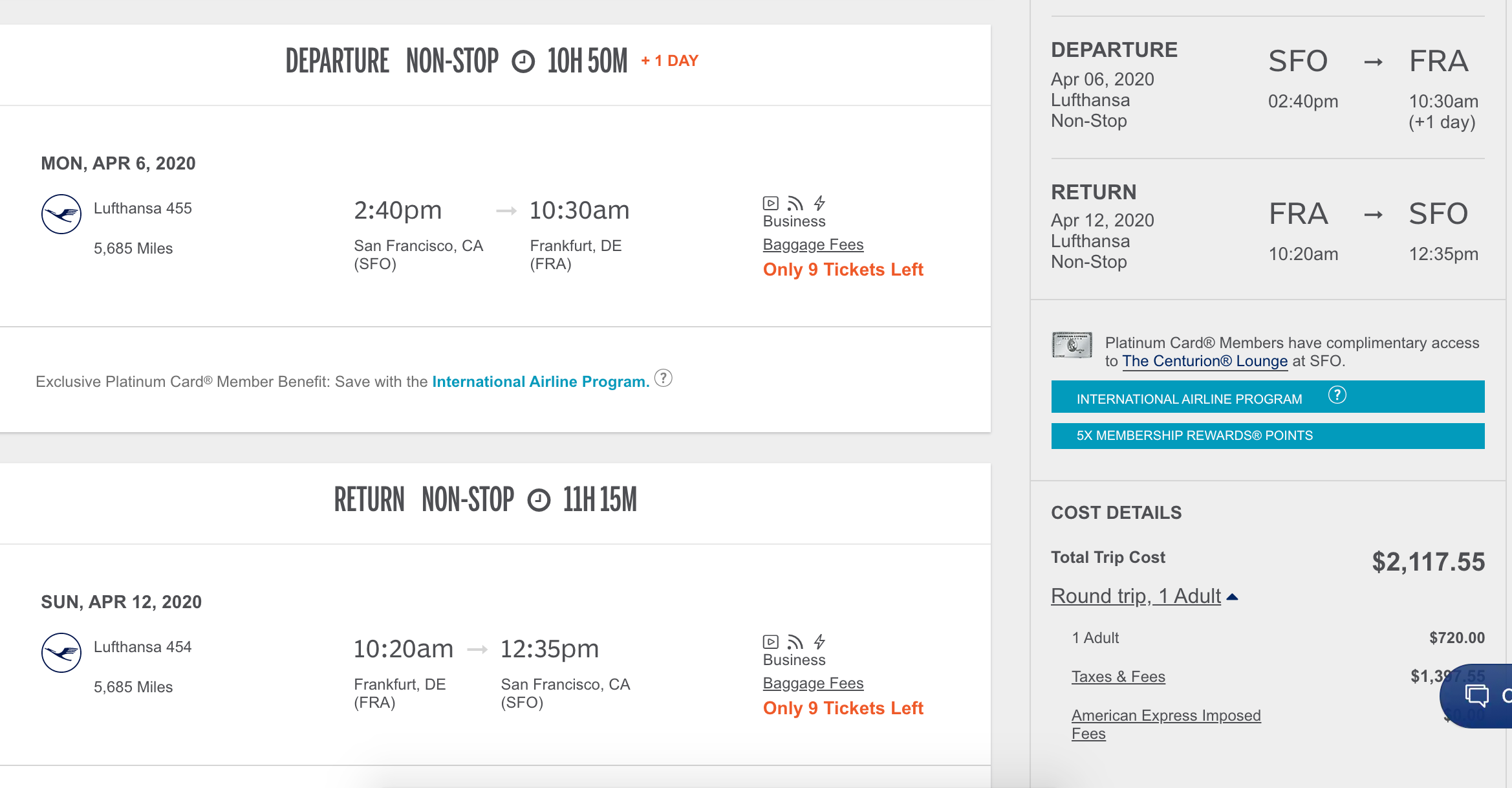 San Francisco (SFO) to Frankfurt (FRA) for $2,118 round-trip nonstop: