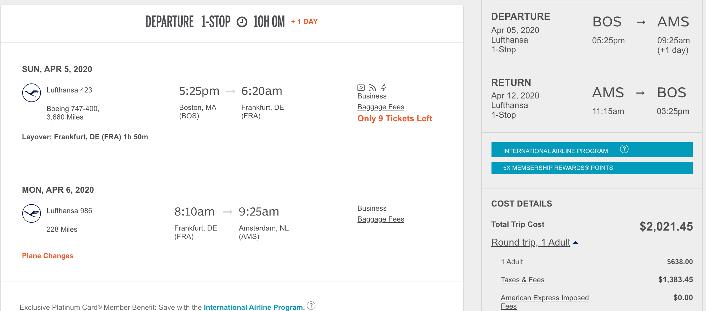 Boston (BOS) to Amsterdam (AMS) for $2,021 round-trip in business: