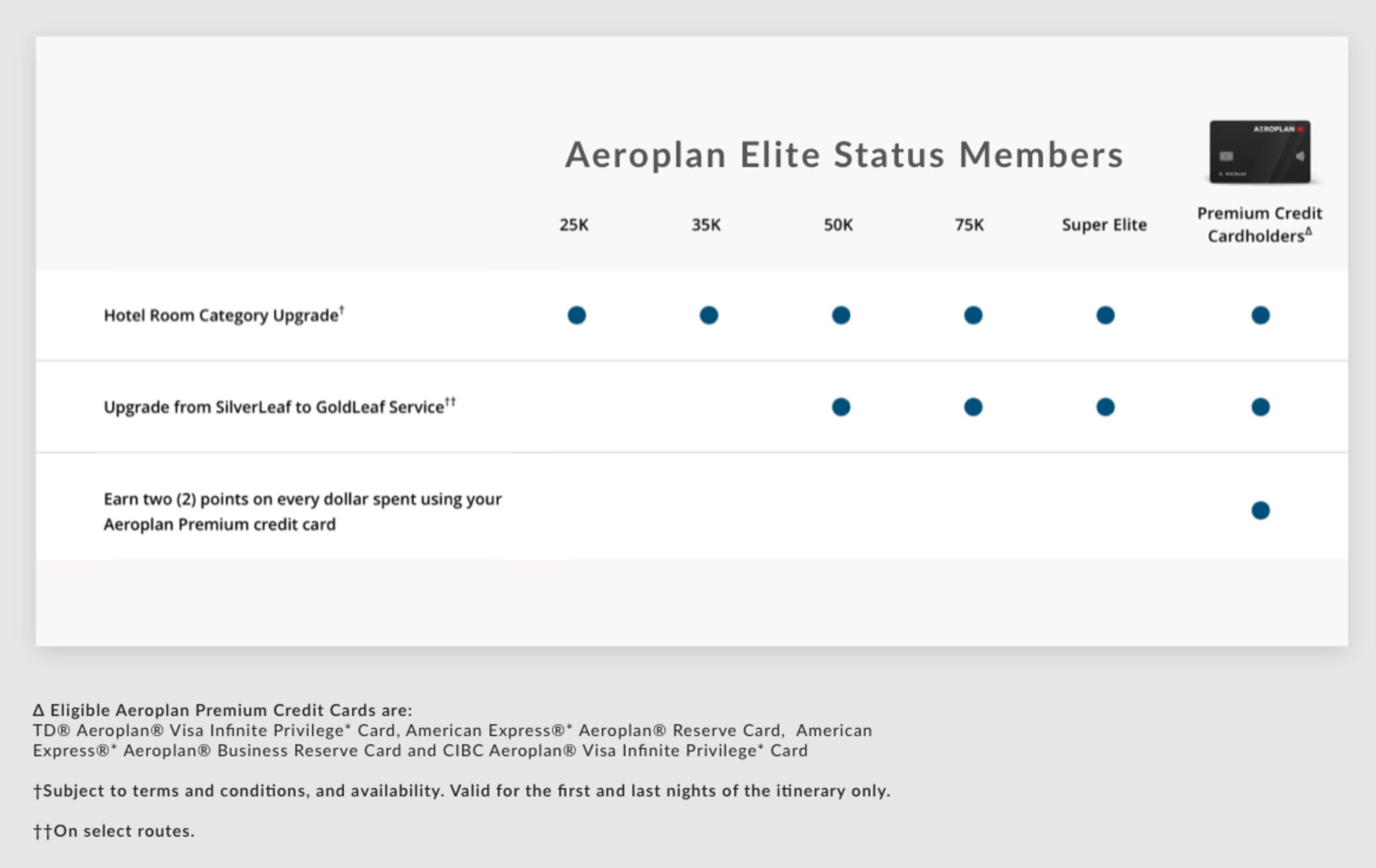 Benefits for Aeroplan elite status members and premium credit cardholders