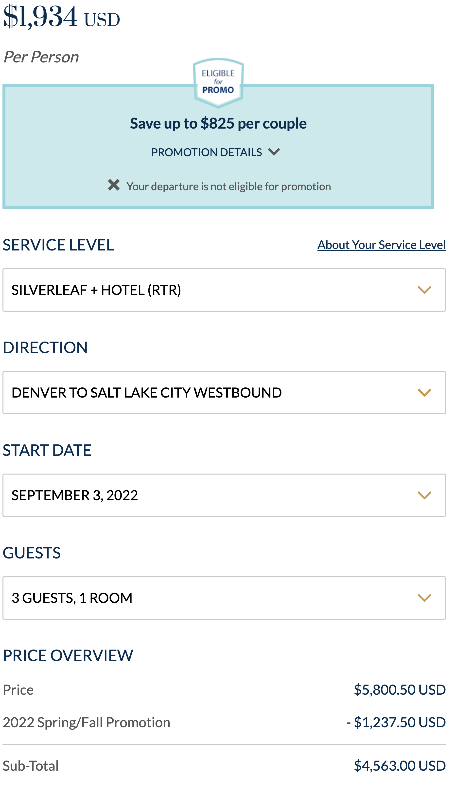 The $825 off per couple actually works for single travelers or an odd number of passengers as well, so it is essentially $412.50 off per person if you book by the end of February. Both SilverLeaf and GoldLeaf bookings will be discounted.