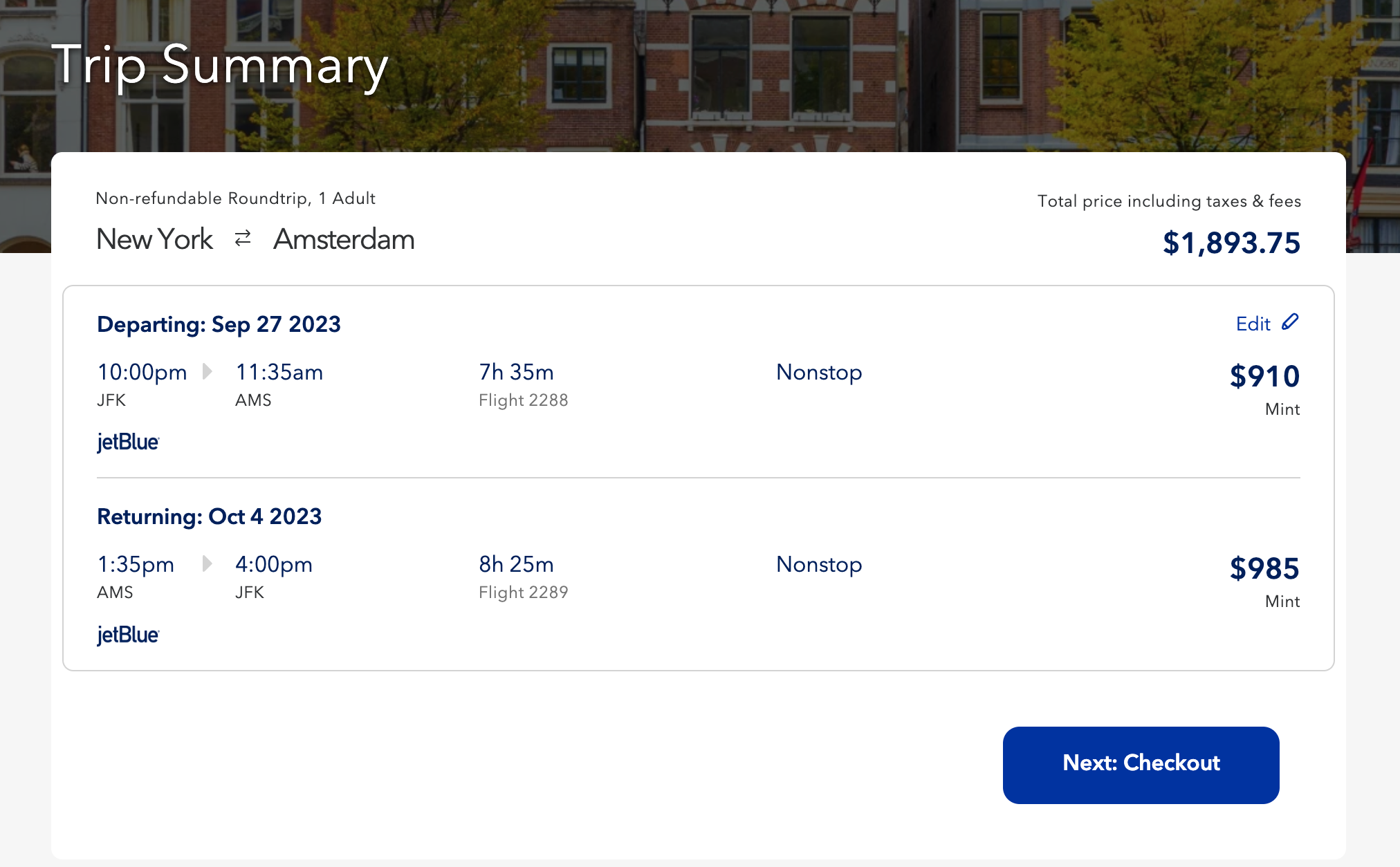 Whether you want to fly economy or opt for a roomier business-class seat on your trip to Amsterdam, JetBlue has great options.