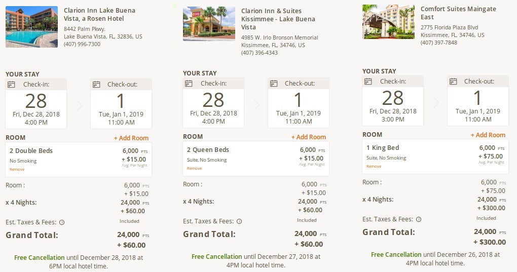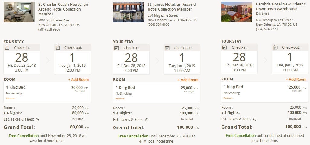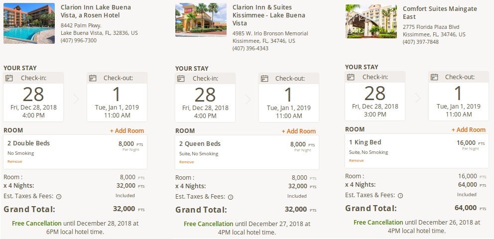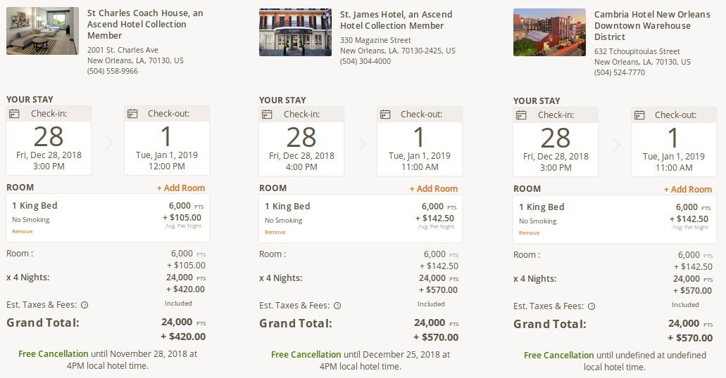Although Choice properties can be booked for as low as 6,000 Choice points per night, I was unable to find hotels in any particularly appealing locations for New Year's Eve that are bookable for 6,000 points. But, I found many rooms and suites that are available and bookable -- some for as low as 8,000 points per night, which TPG's latest valuation pegs at $48. But act quick, as I expect many of these hotels will sell out very soon.