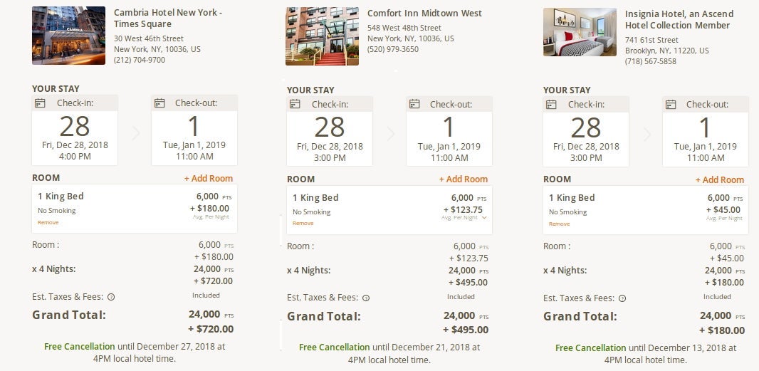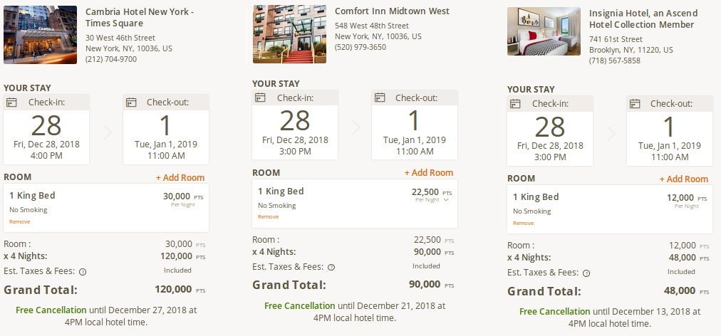 Luckily, there are many Choice properties with availability for a long weekend over New Year's Eve, including multiple 30,000 points per night properties very close to Times Square as well as a 12,000 points per night option in Brooklyn:
