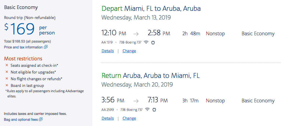 Miami (MIA) to Aruba (AUA) for $169 round-trip nonstop on American: