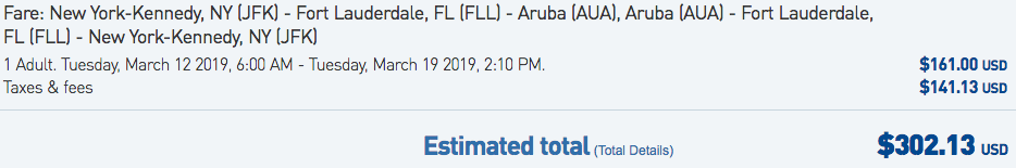 New York (JFK) to Aruba (AUA) for $302 round-trip on JetBlue: