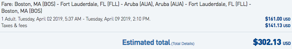Boston (BOS) to Aruba (AUA) for $302 round-trip on JetBlue: