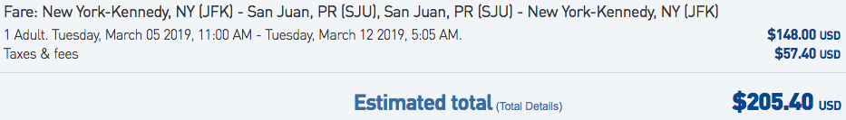 New York (JFK) to San Juan (SJU) for $205 round-trip on JetBlue: