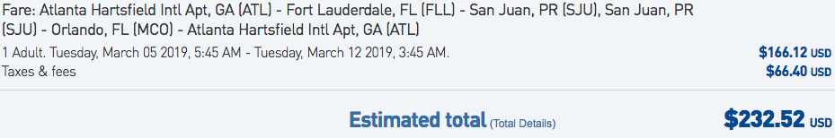 Atlanta (ATL) to San Juan (SJU) for $233 round-trip on JetBlue: