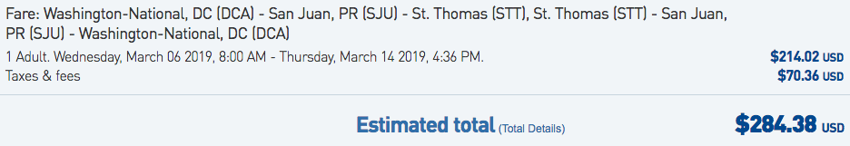 Washington DC (DCA) to St Thomas (STT) for $284 round-trip on JetBlue: