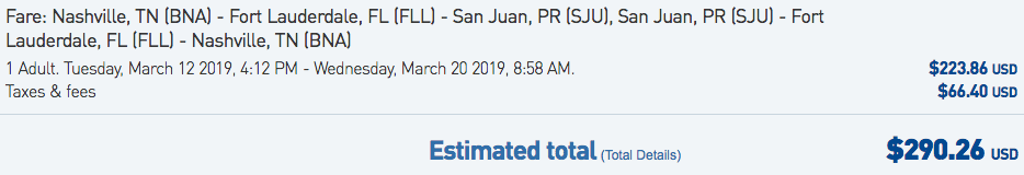 Nashville (BNA) to San Juan (SJU) for $290 round-trip on JetBlue: