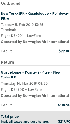 New York (JFK) to Point-à-Pitre (PTP) for $218 round-trip nonstop on Norwegian: