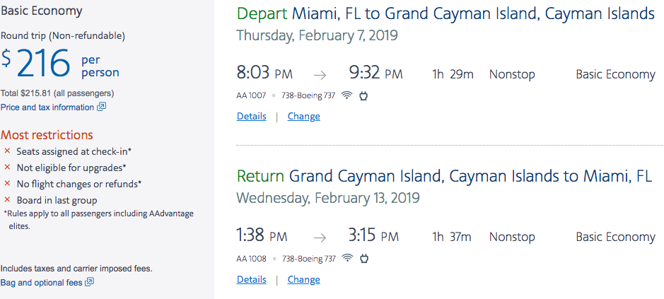 Miami (MIA) to Grand Cayman (GCM) for $216 round-trip nonstop on American:
