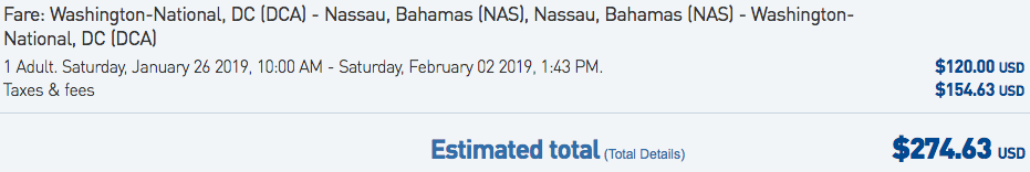 Washington DC (DCA) to Nassau (NAS) for $275 round-trip nonstop on JetBlue: