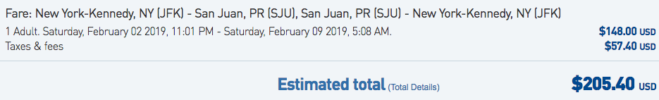 New York (JFK) to San Juan (SJU) for $205 round-trip nonstop on JetBlue: