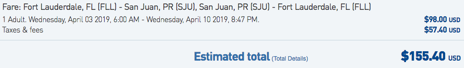 Fort Lauderdale (FLL) to San Juan (SJU) for $155 round-trip nonstop on JetBlue: