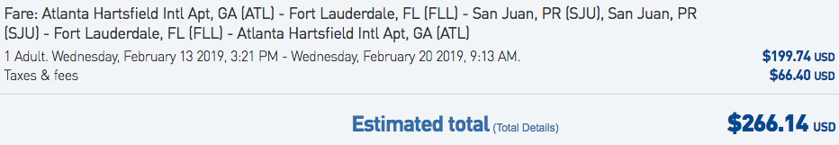 Atlanta (ATL) to Sam Juan (SJU) for $266 round-trip on JetBlue: