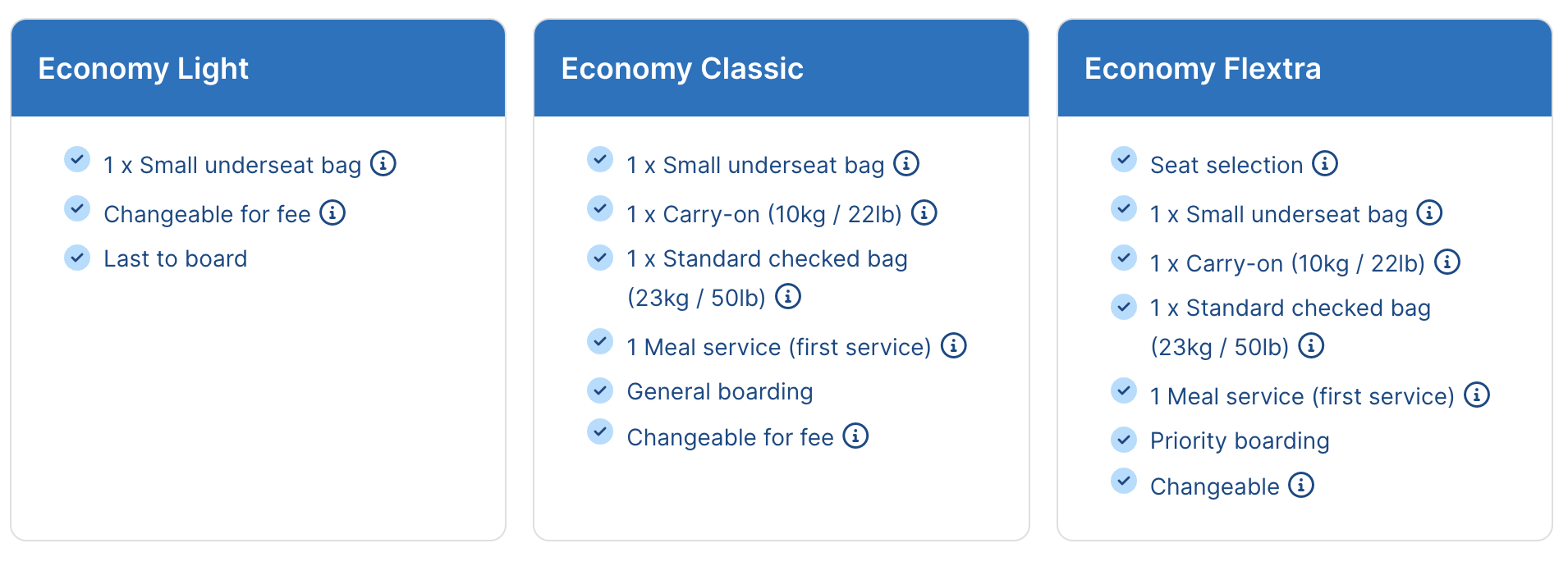 For more flexibility, such as extra baggage and seat selection, consider upgrading to Economy Classic or Economy Flextra.