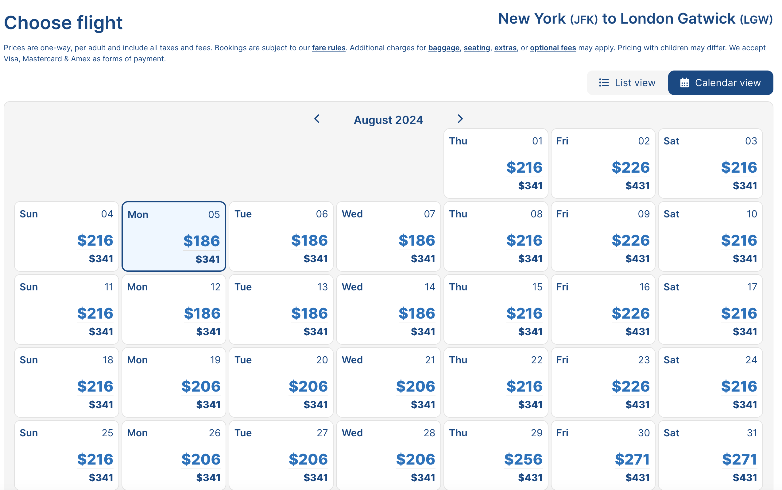 Use Norse's calendar feature to search for summer 2024 availability, which includes the aforementioned one-way flights. You might also be able to find two discounted one-way fares to make a round-trip itinerary.