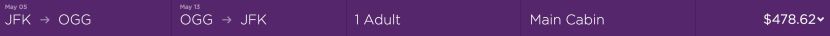 New York (JFK) to Maui (OGG) for $479 on Virgin America in May.
