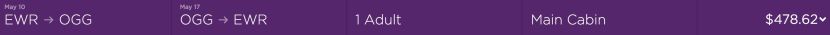 Newark (EWR) to Maui (OGG) for $479 on Virgin America in May.