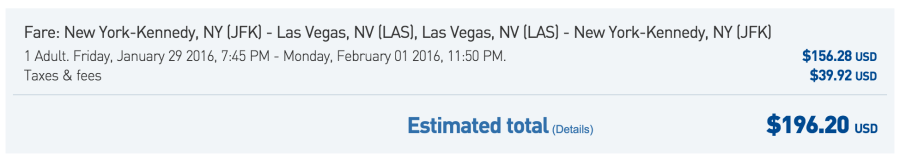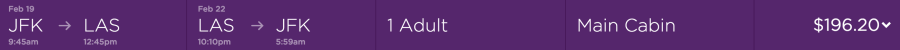 New York (JFK) to Las Vegas (LAS) for $196 on JetBlue: