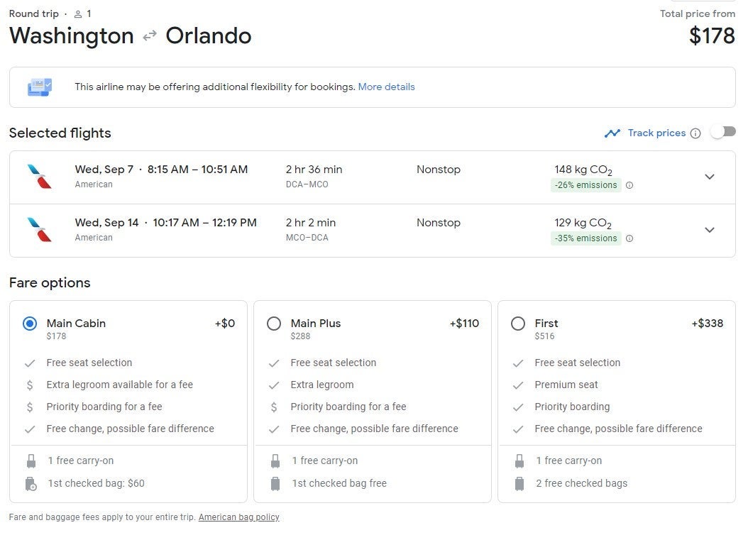 From the East Coast, there are flights available from Washington, D.C., (DCA) to Orlando (MCO) for $178 round-trip.