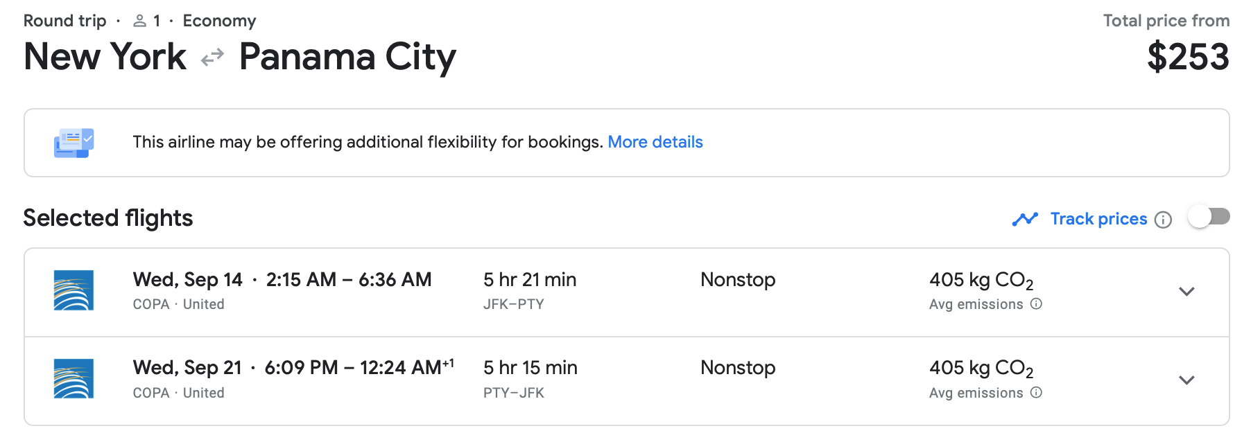 We found a slew of great fares for New York City-area travelers in this deal. You can fly nonstop from Kennedy Airport (JFK) to Panama City (PTY) in September for only $253 round-trip on Copa. That same great price is available through December, although availability gets more limited near the holiday season.