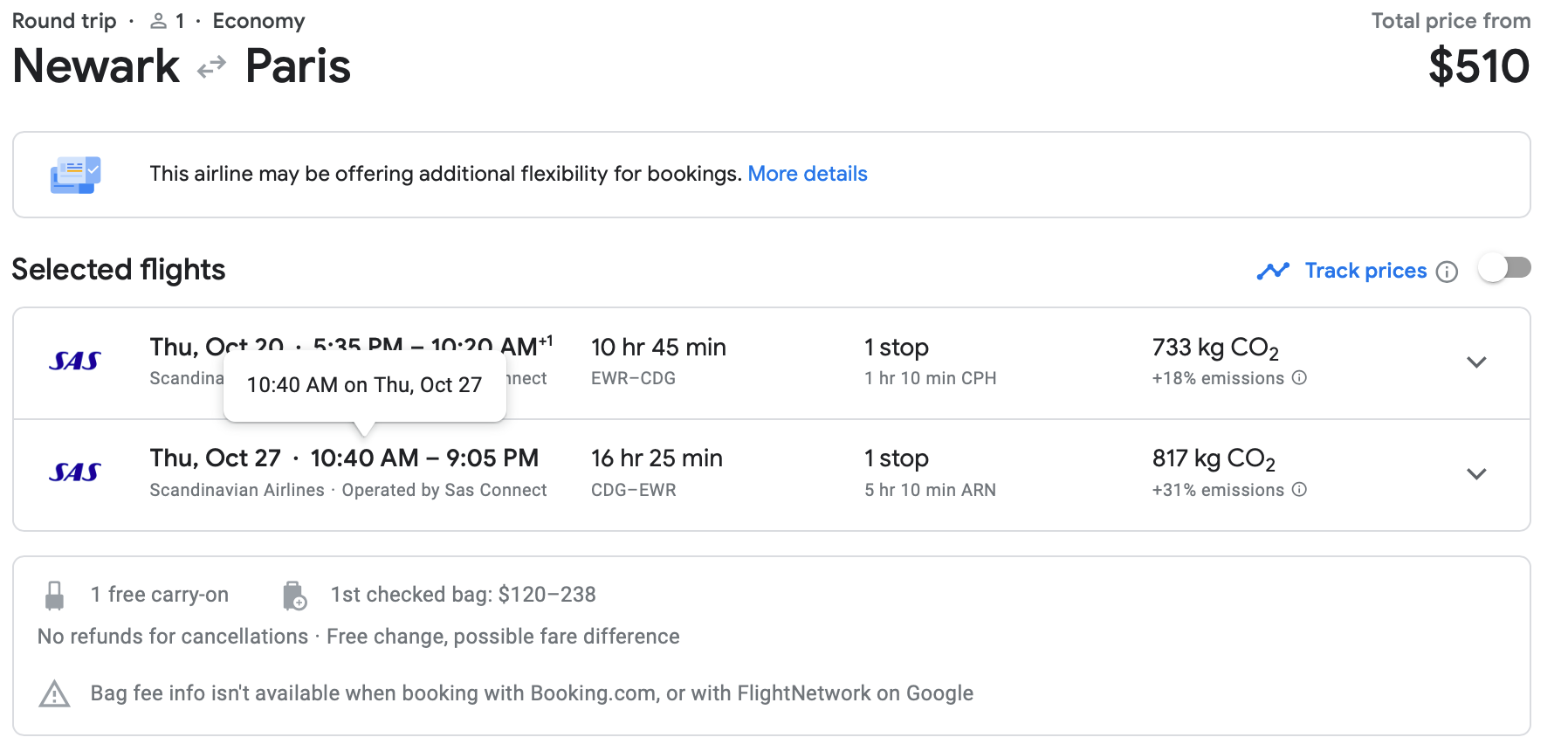 You can also find some bargain airfare if you fly out of Newark-Liberty Airport (EWR), like this itinerary on SAS for just $510 round-trip.