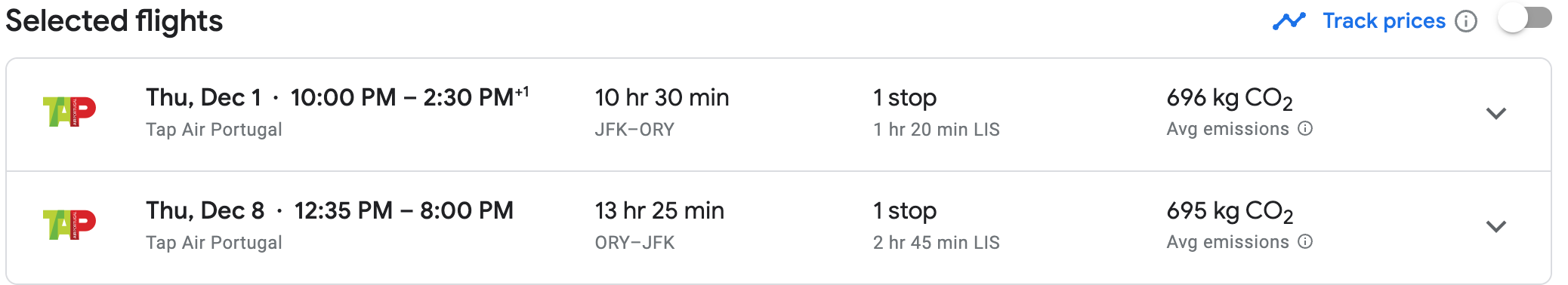 For example, there are round-trip flights from New York City to Paris flying TAP Air Portugal for approximately $400, including the below flight in early December.