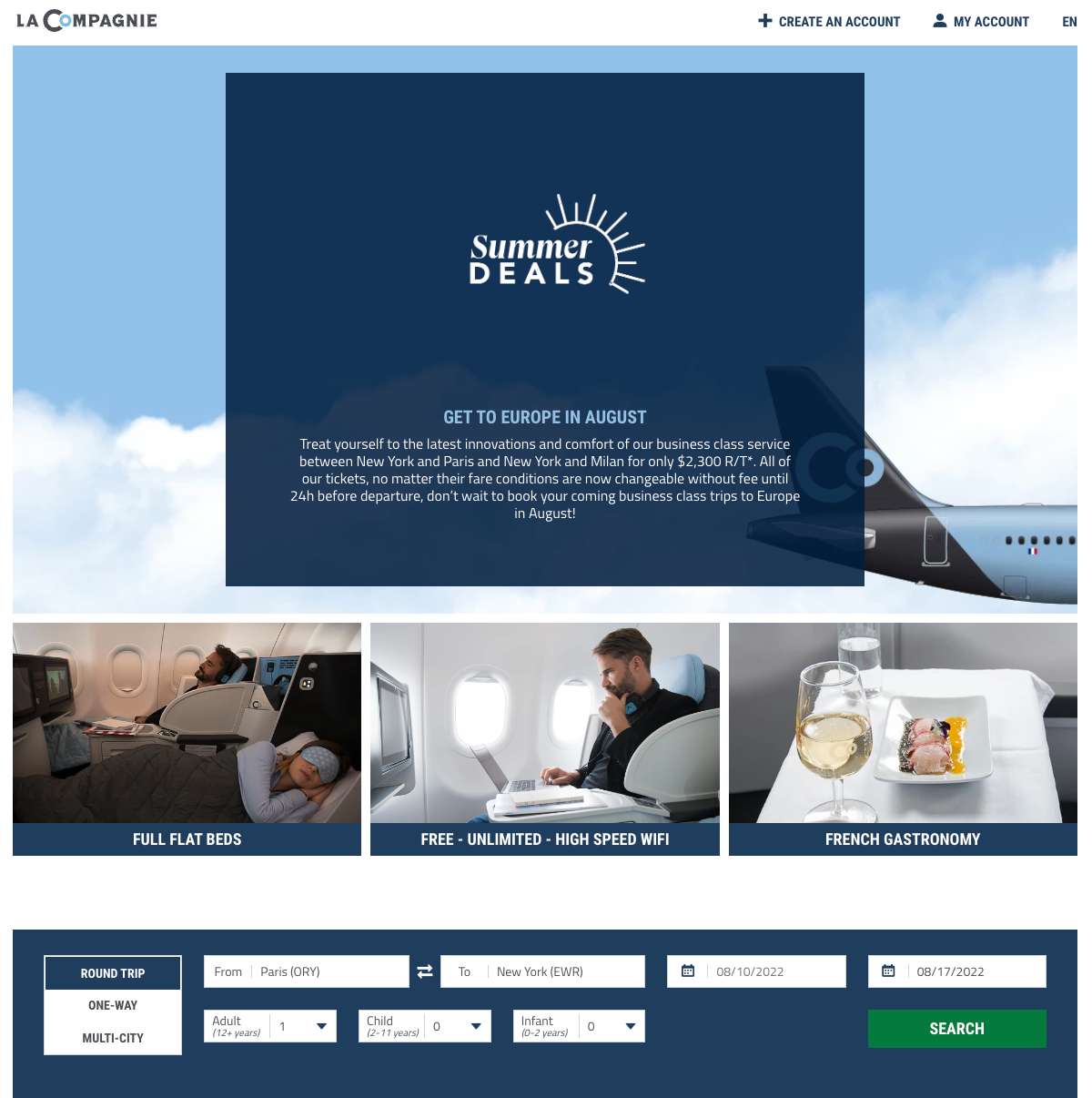 This is a good deal for business-class travel to Europe this summer since comparable flights from the New York City area over the same time period on other carriers start at $5,300. La Compagnie's $2,300 non-stop round-trip business class offer is going to be hard to beat for last-minute travel this summer, so be sure to book soon if interested.