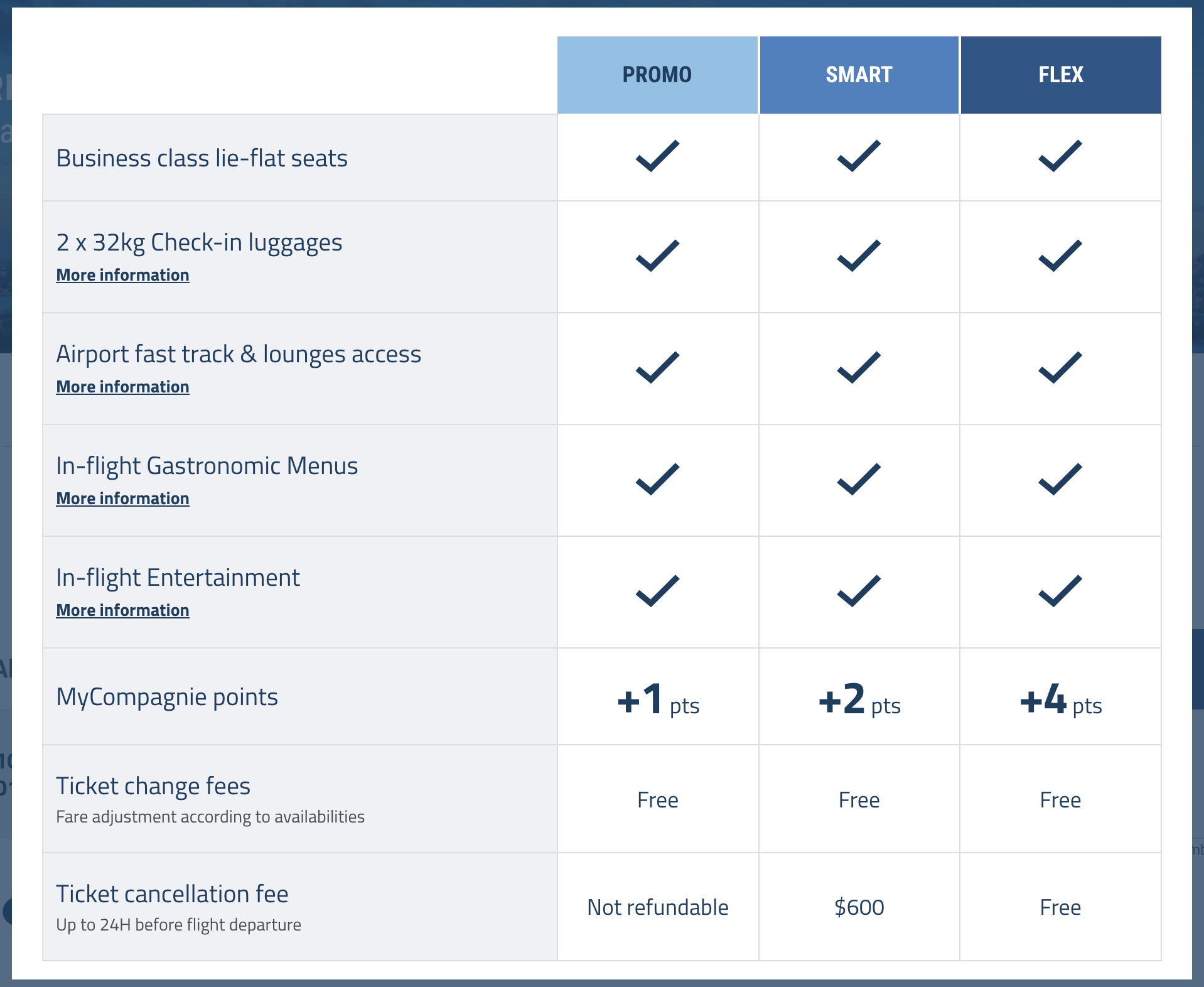 Stanard La Compagnie service includes lie-flat seats in a 2-2 configuration, free Wi-Fi, amenity kits with Caudalie skincare products and seasonally curated menus by Michelin-starred chefs — even on promo fares.