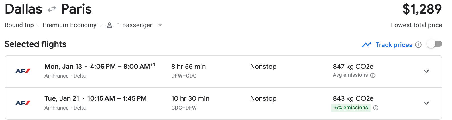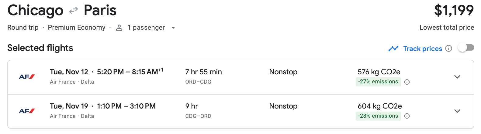There are plenty of premium economy options from major U.S. cities to Paris this fall and winter. We always encourage you to be as flexible as possible with your travel schedule, and the same goes for this deal. Some routes have limited availability, so be patient and keep checking.