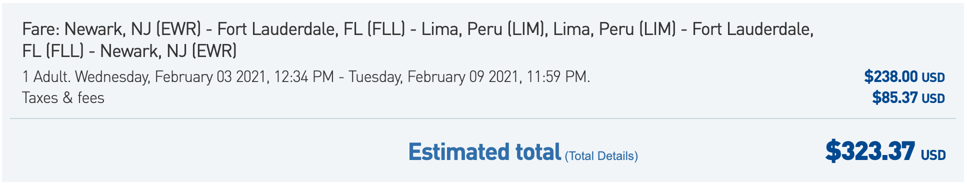 Newark (EWR) to Lima (LIM) for $323 round-trip on JetBlue: