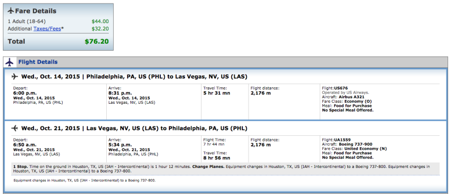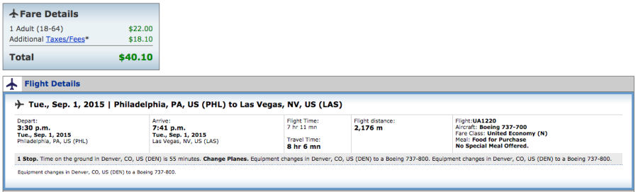 Philadelphia to Las Vegas for $40 on United (earns 2,176 PQMs):