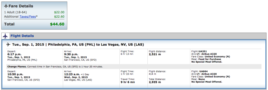 Low Vegas fares from Philly seem to pop up quite often, but it's been a while since we've seen a sale this good. You can fly nonstop between Philadelphia (PHL) and Las Vegas for $37 each way on American. United also has similar fares, from $40 each way (a stop is required). You could theoretically also use this sale to get to Chicago, Denver, Houston, San Francisco or other United hubs on the cheap — you can get off and throw away the Vegas segment, as long as you're not checking bags (note: airlines frown upon this practice). You can also mix airlines (American and United) if you're booking a round-trip (see below).