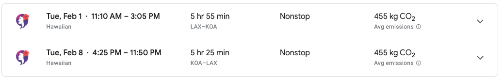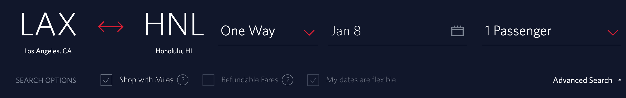 - LGB/LAX/OAK/SAN/SJC to Maui (OGG).