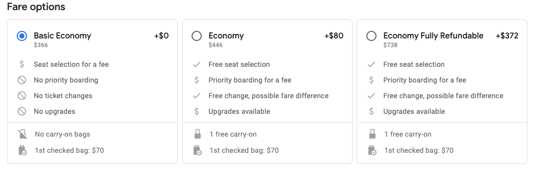You may also find United flights in basic economy via this deal but they're likely more expensive, include a layover and do not include carry-on luggage or seat selection.