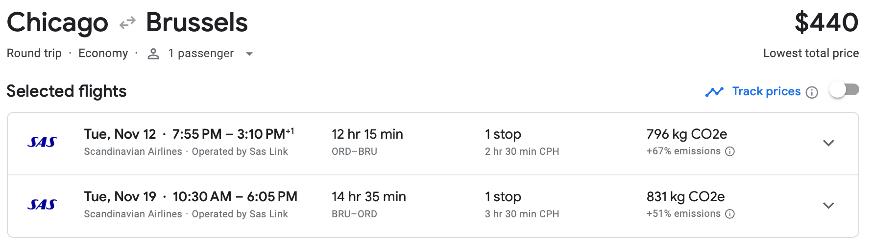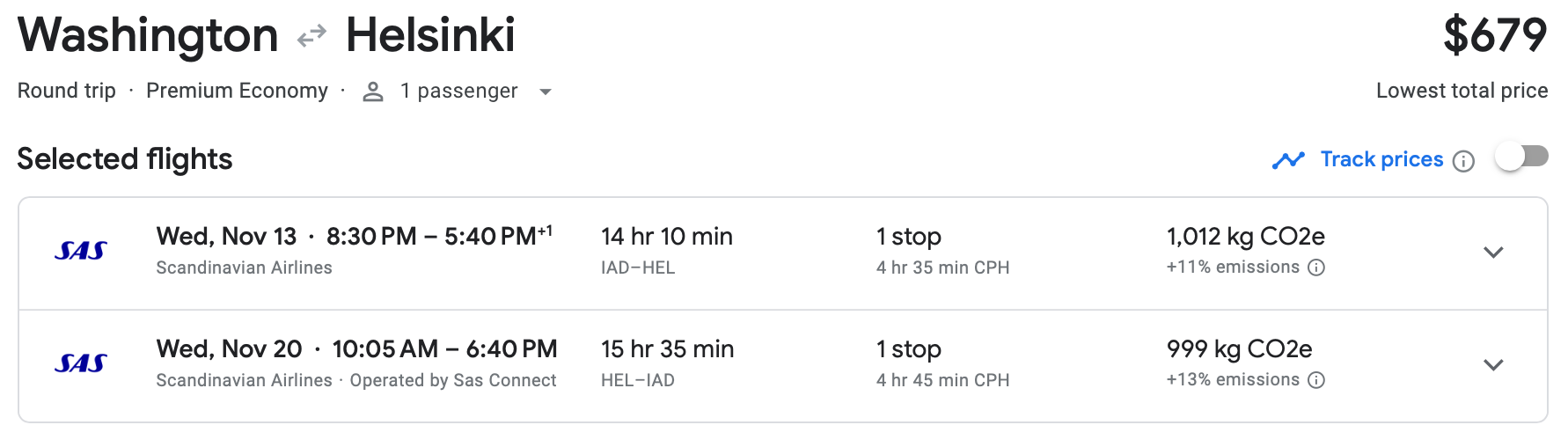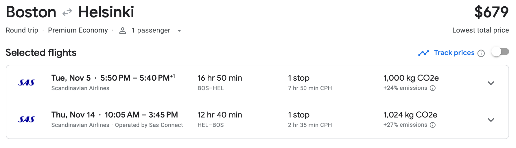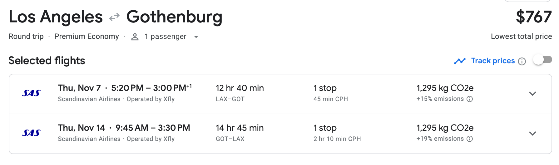 How to book: Browse Google Flights, then book directly with the SAS website.