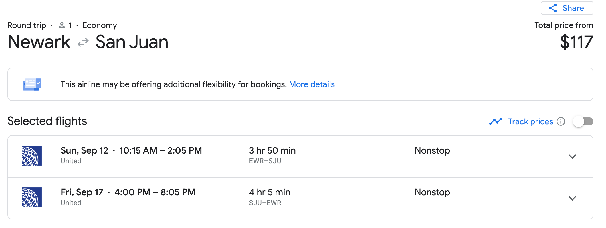 Newark (EWR) to San Juan (SJU) for $117 round-trip