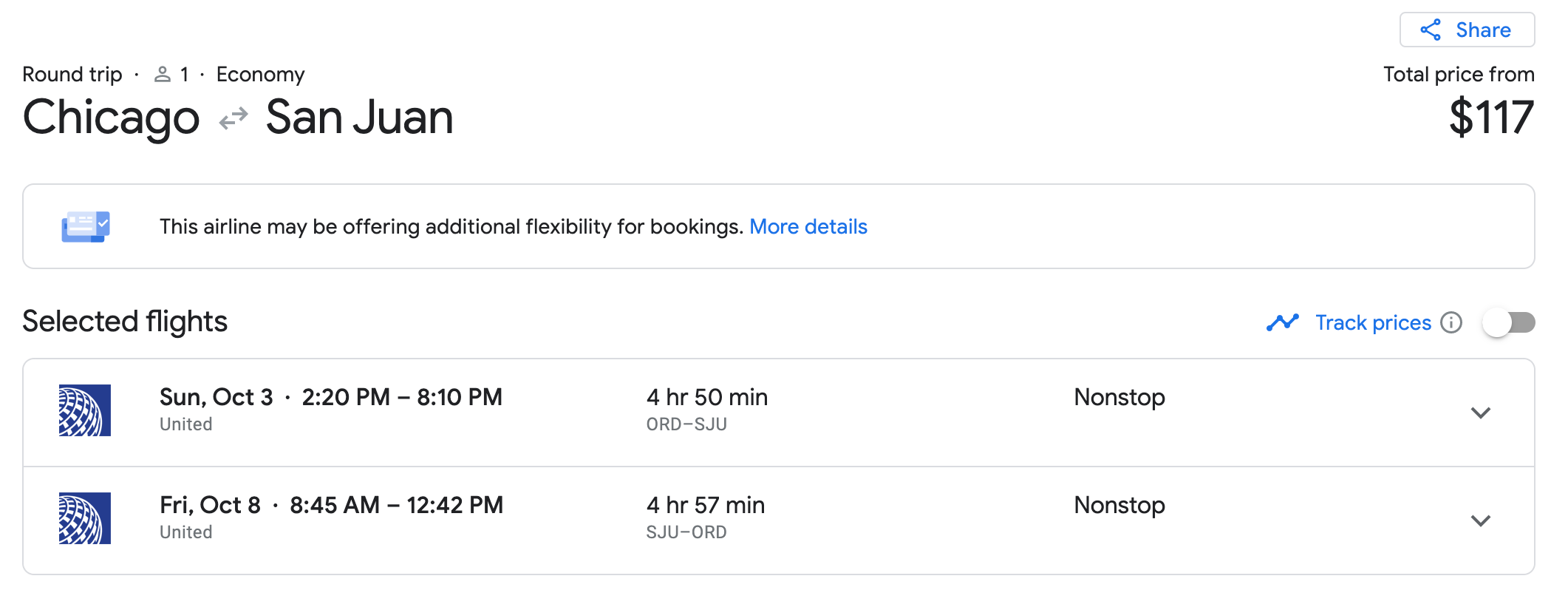 Chicago (ORD) to San Juan (SJU) for $117 round-trip