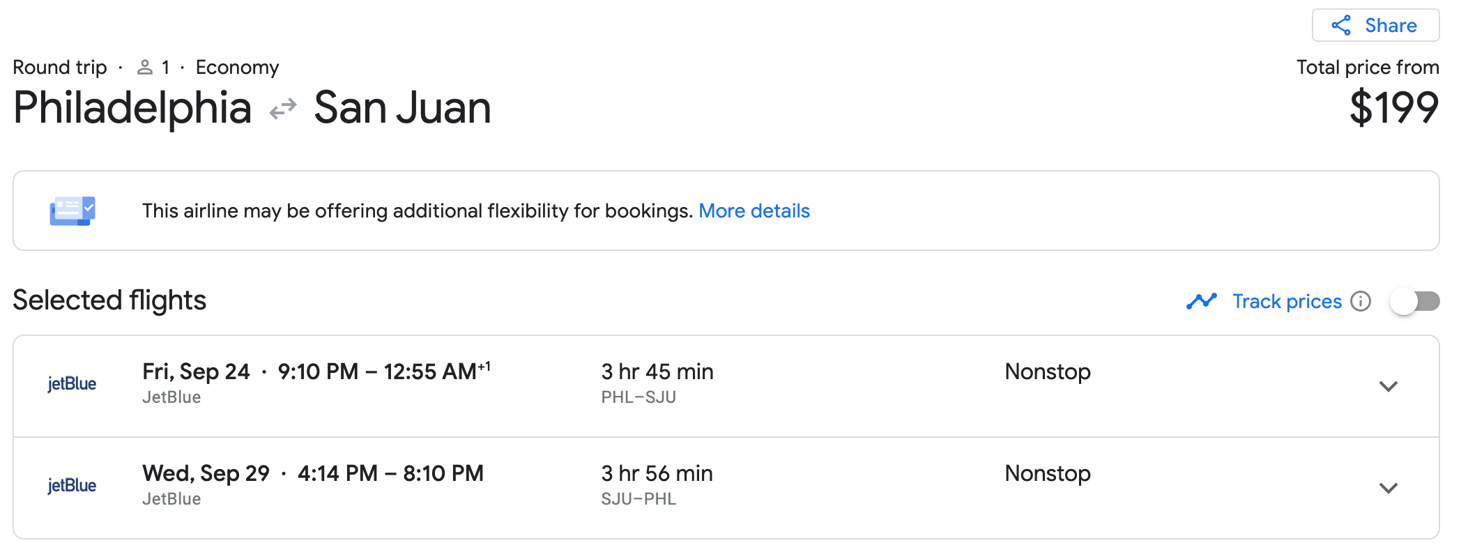 Philadelphia (PHL) to San Juan (SJU) for $199 round-trip