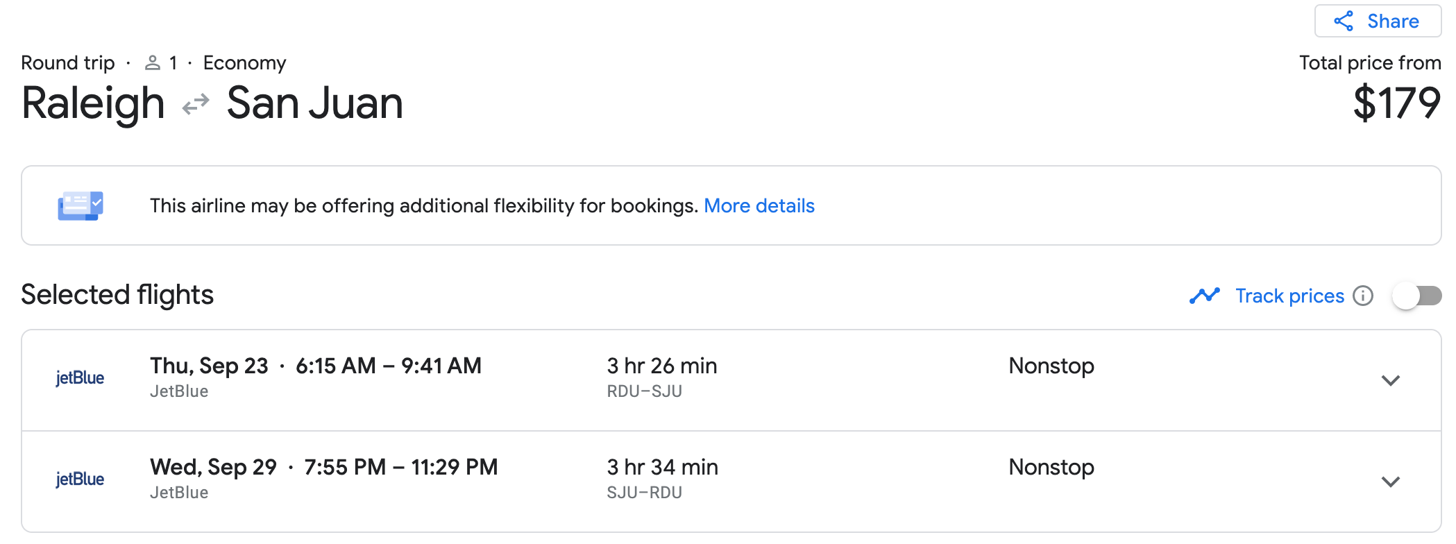 Raleigh-Durham (RDU) to San Juan (SJU) for $179 round-trip