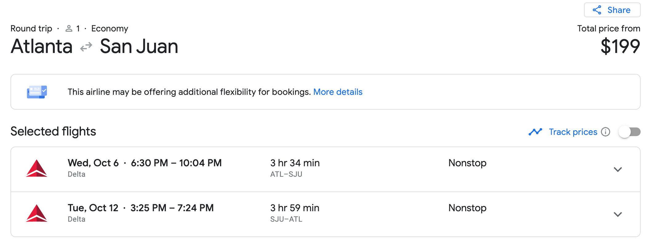 Atlanta (ATL) to San Juan (SJU) for $199 round-trip