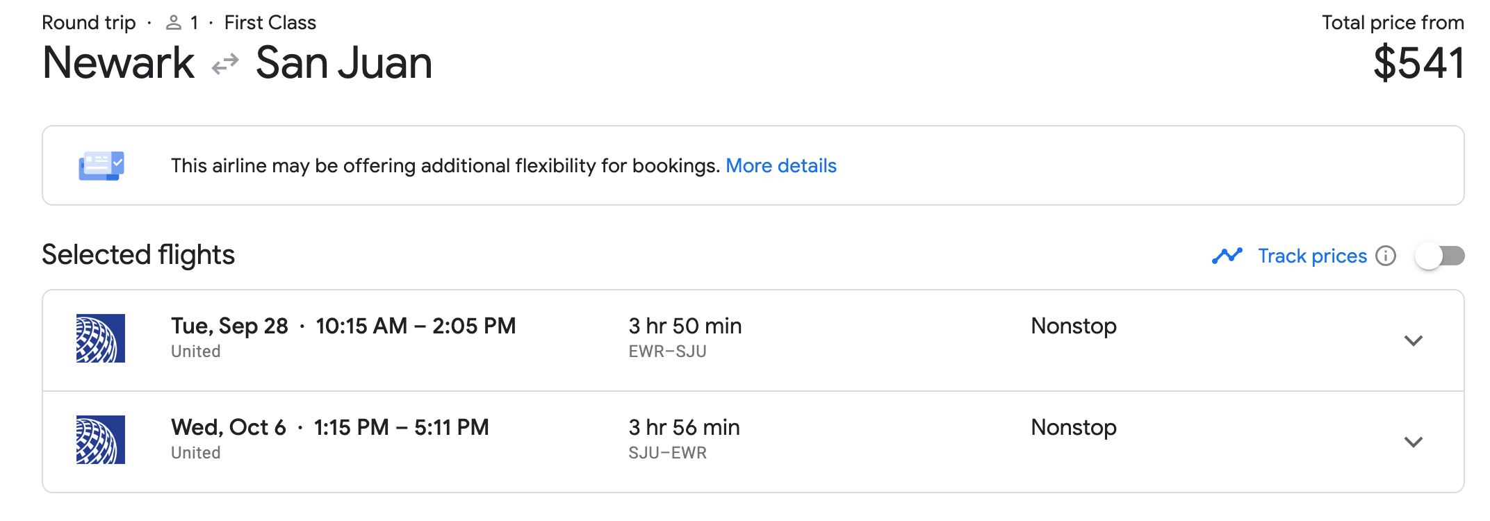 Newark (EWR) to San Juan (SJU) for $541 round-trip